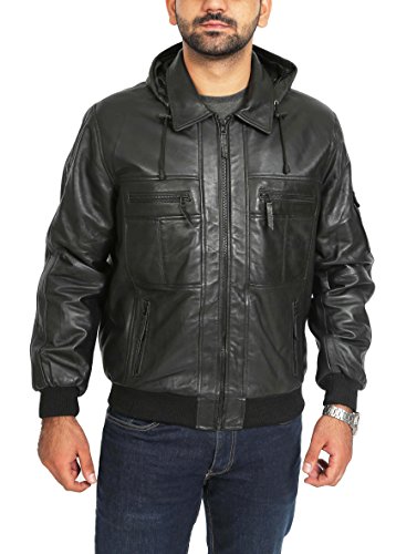 House Of Leather offer Mens Detachable Hooded Leather Jacket Gents Bomber Zip Coat Bronx Black (M). This awesome product currently limited units, you can buy it now for £205.00 £129.00, You save £76