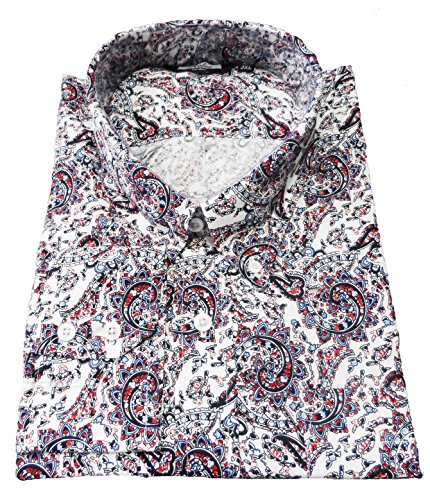 Best Seller! Relco White/Red/Blue Paisley Cotton Long Sleeved Retro Mod Button Down Shirts (Large Collar Size 16-16.5 Underarm to Underarm 22.5ins) Review